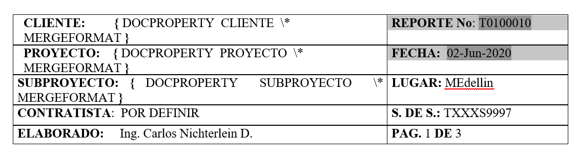 Plantillas para confección de Reportes luego de Inspección/Plantillas WORD/ Actualizar campos