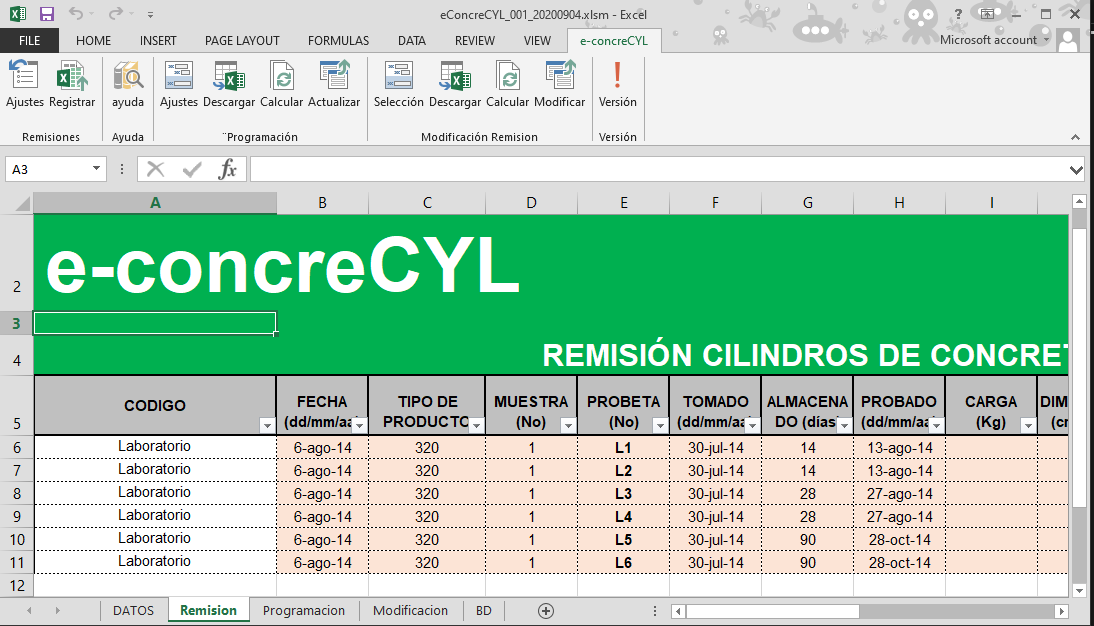 Estas Probetas se canalizan mediante una Remisión, en la cual se ha de incluir la referencia a la calidad del concreto, obra y/o cliente, fecha de ensayos y valores obtenidos.