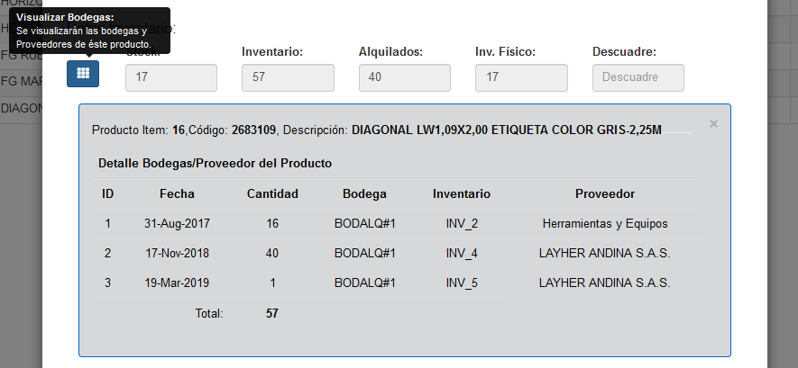 se podrá ver el detalle de las bodegas, tal como se muestra en la imagen a continuación.