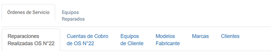 Para tal efecto se muestra un segundo Nivel de pestañas que muestra las diversas opciones que hay al realizar un servicio.