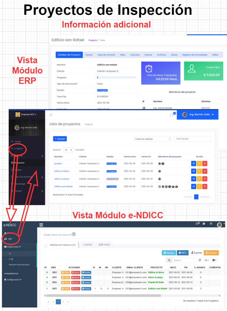 Proyecto creado en Vista de módulo ERP se refleja en Vista de Módulo e-NDICC y vice versa.