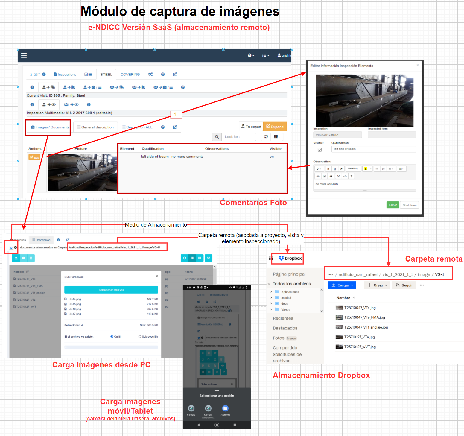 - Adicionalmente, todas las imágenes que se captan en terreno se guardan en sistemas de almacenamiento remoto. Nunca se guardará en el servidor.