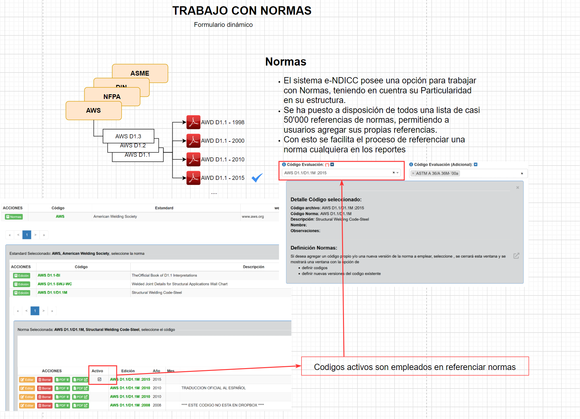 - Se dispone de opción para visualizar y agregar estándares , normas y ediciones de códigos de acuerdo a necesidad.