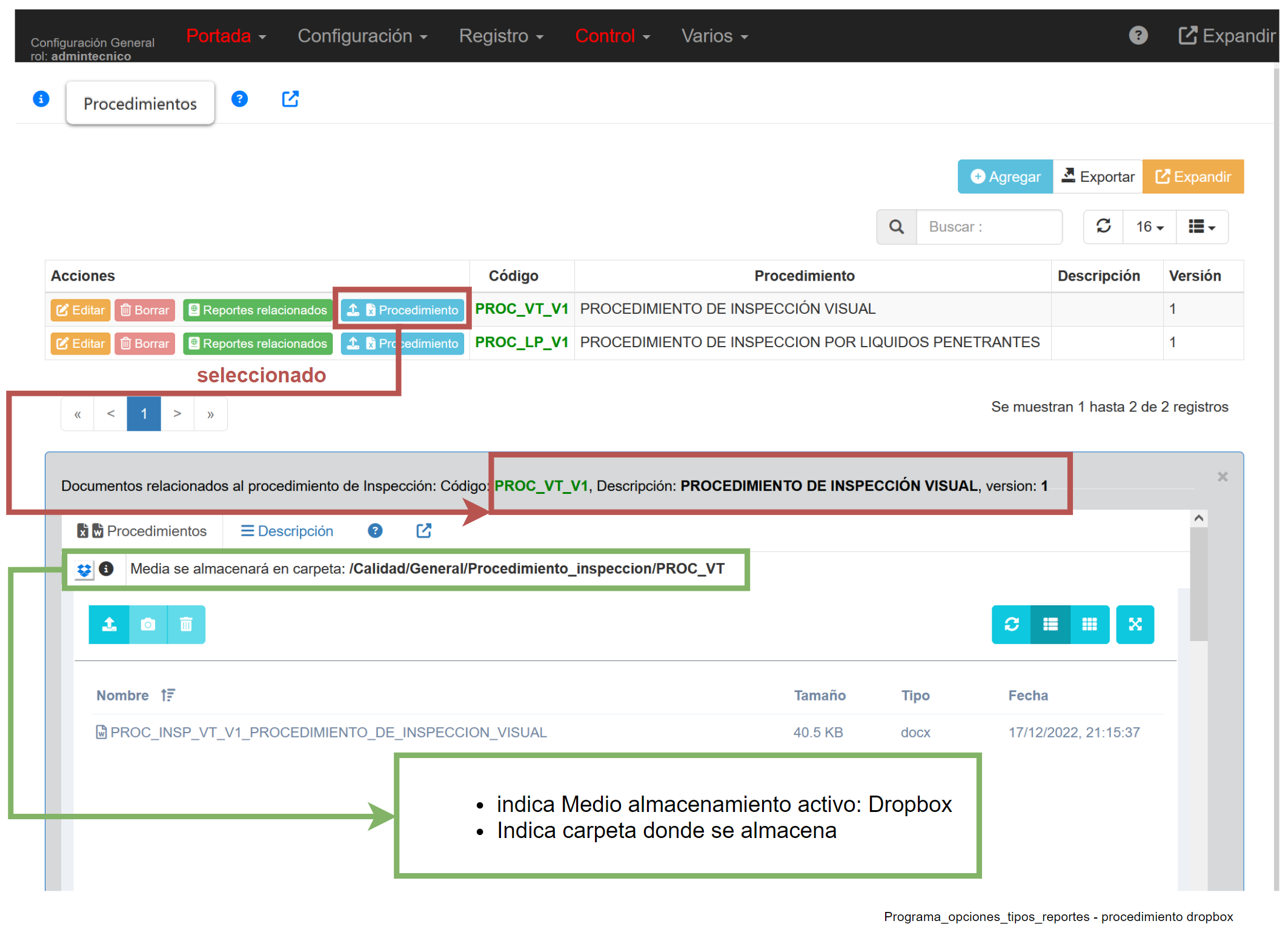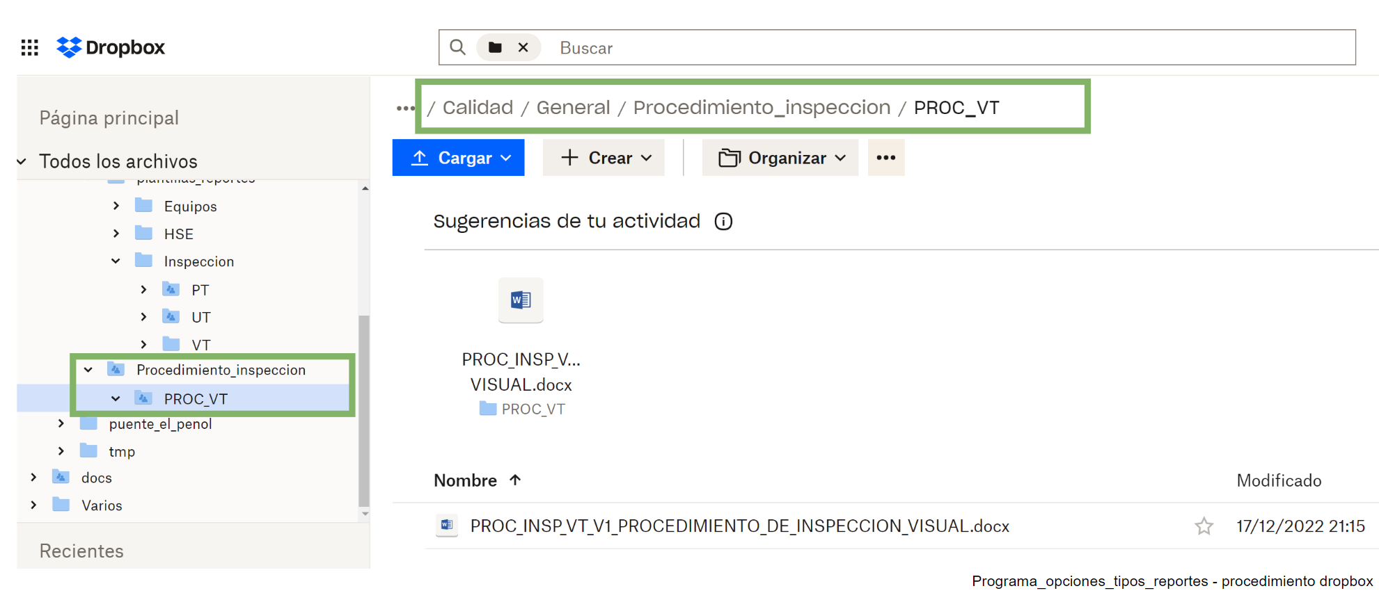 Fig 496 Extracto de pantalla de procedimiento PROC_VT_V1 en cuenta de dropbox asociada.