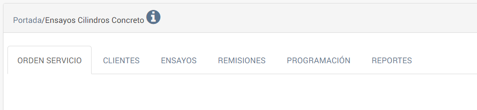 Una vez seleccionada la pestaña de ensayos de cilindros de Concreto, aparece una pantalla con las siguientes PESTAÑAS de información