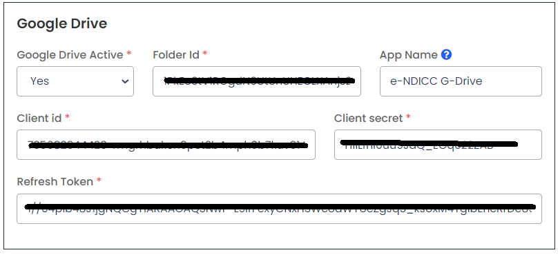 Una vez configurada la app de acceso exitosamente. En el caso de Google Drive, se obtienen los siguientes parámetros