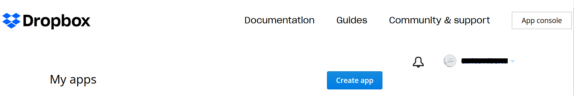 En Dropbox developer (https://www.dropbox.com/developers), se debe seleccionar el botón Create App (crear aplicación) para crear o seleccionar el botón "app console" si se quiere editar.