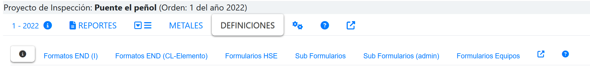 Al activar y seleccionar la pestaña "Definición" aparece una serie de pestañas en un segundo nivel que satisfacen la etapa Definición, tal como se muestra en la imagen a continuación.