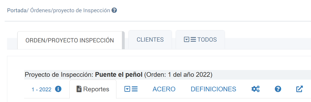 Fig 209 pestañas disponibles en una determinada Orden/Proyecto de Inspección