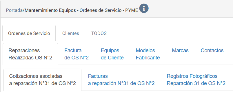 Fig 396 Pestañas de Tercer nivel, relacionadas con la Documentación Anexa asociada a una Reparación de un equipo Seleccionado.