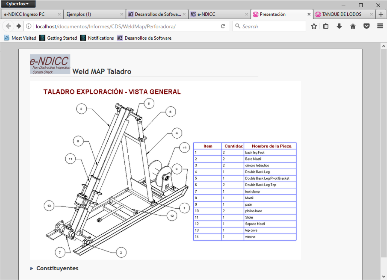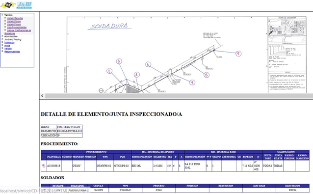 Disponible en WEB versión simplificada, es decir, se omiten algunos documentos por razones obvias, pero reportes de las inspecciones se mantienen (ver Ejemplo), se cuenta con permiso del cliente para mostrar el proyecto.