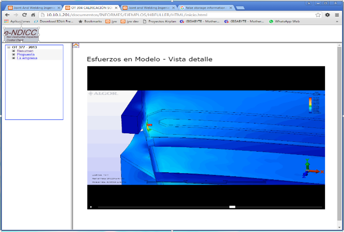 - Junto a análisis de Falla e inspecciones realizadas se agrega Video mostrando deformación de estructura y concentración de esfuerzos, se entrega el resultado de programa de elementos finitos.