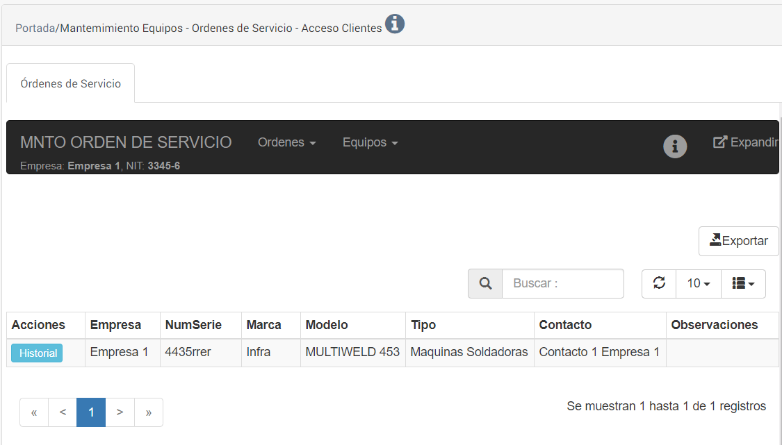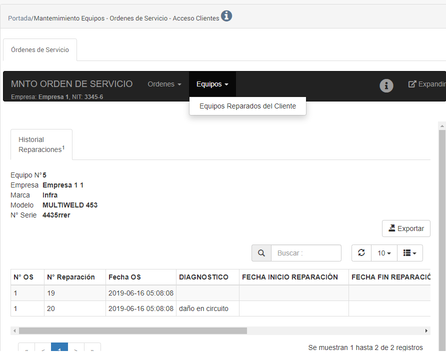 Portada / Mantenimiento Equipos - Ordenes de Servicio - Acceso a Clientes / Equipos reparados del Cliente