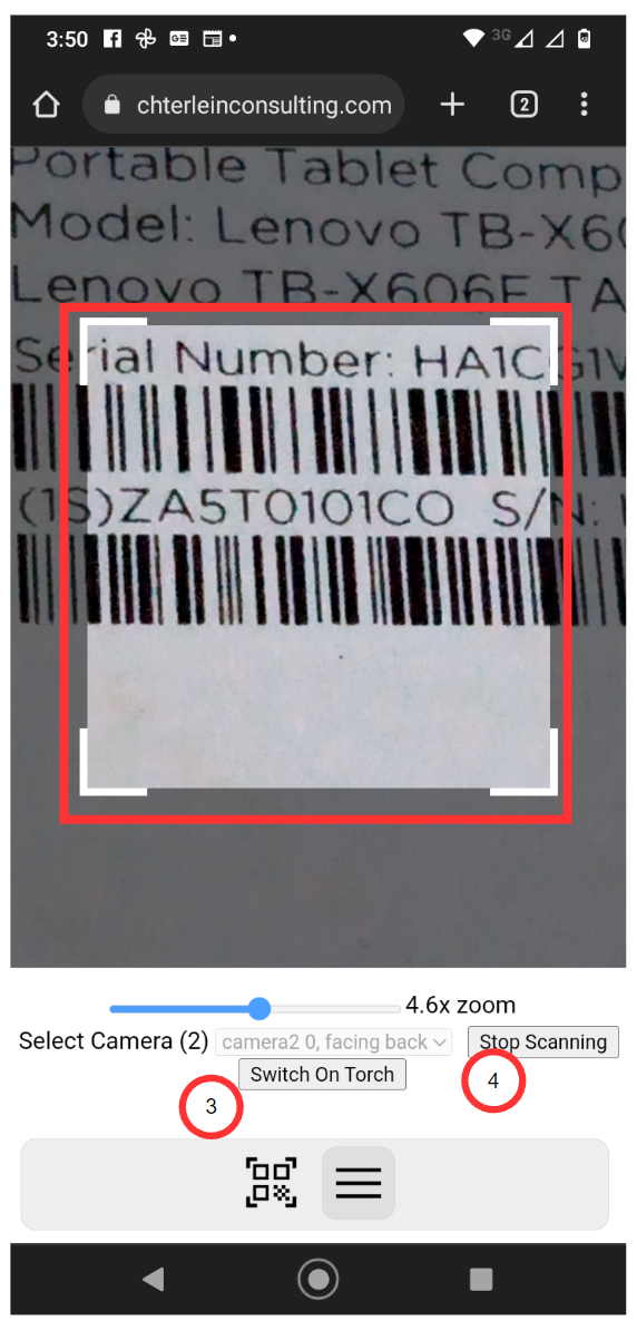 - Al presionar el botón comenzar a escanear (start scanning) se mostrará en un recuadro lo que la cámara está captando, se puede realizar ajustes con la barra deslizadera lo que cambiará el zoom de la imagen.