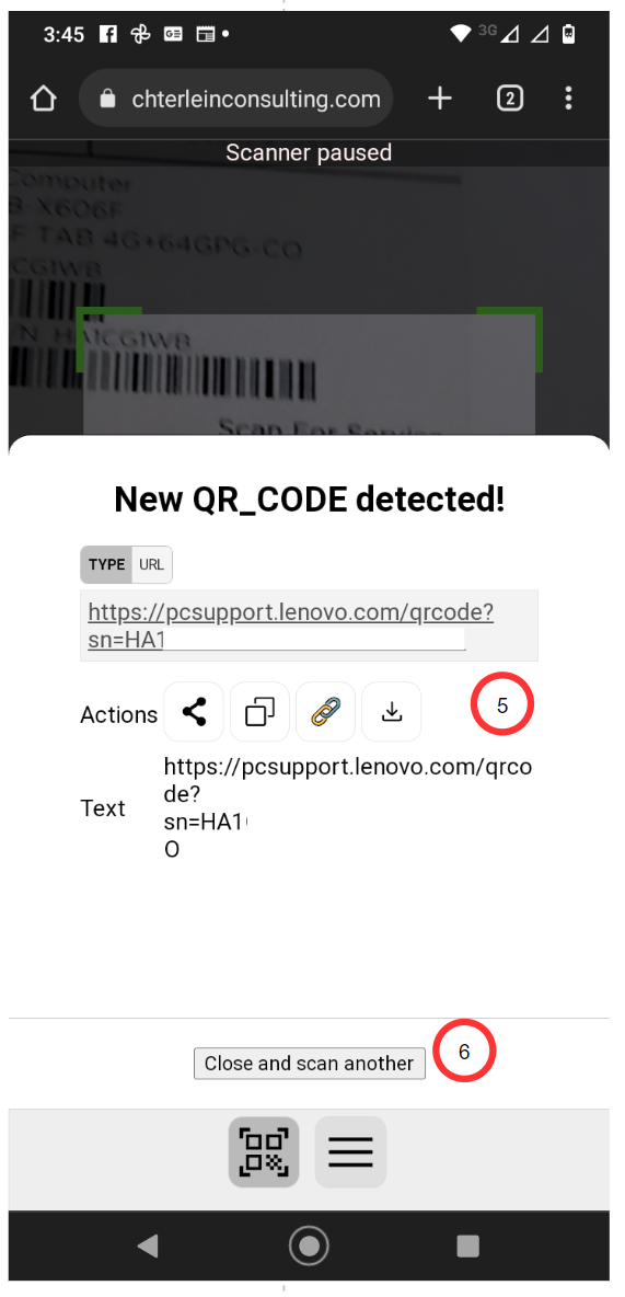 - Por último, se presenta un botón que permite cerrar esta ventana y realizar otro escaneo. (close and scan another)