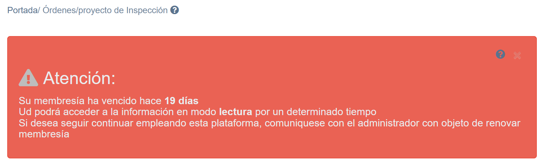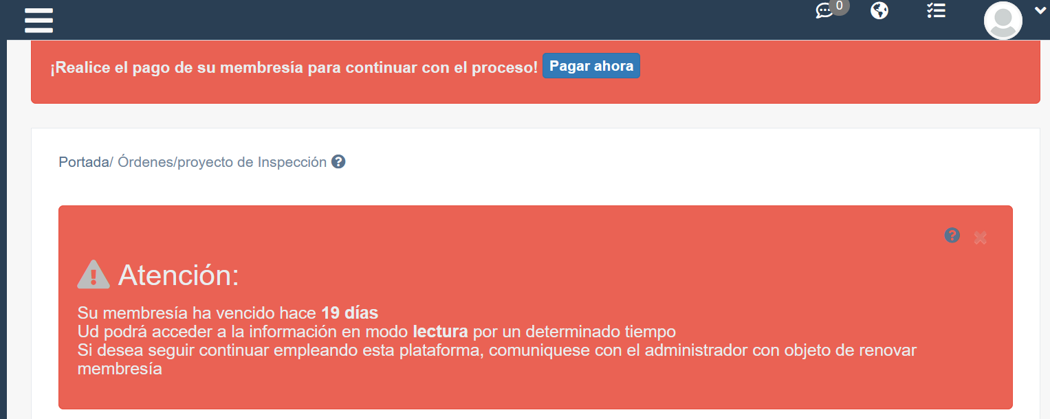 Puesto que la membresía esta en estado vencido, se le permite al usuario poder ver la información por un determinado período de tiempo