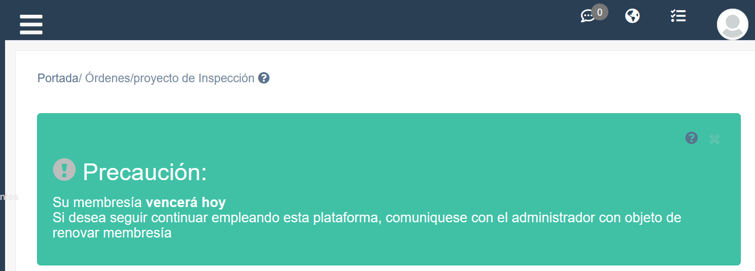 El usuario aún puede trabajar en el sistema. Pero se le recomienda comunicarse cuanto antes con el administrador para no perder la continuidad del trabajo.