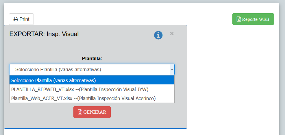 La imagen anterior permite apreciar que se puede seleccionar qué Plantilla emplear, esto es particularmente interesante si se desea generar distintos Formatos de documentos para un determinado Reporte. Esto puede ser especialmente interesante si se requiere generar un reporte distinto para distintos destinatarios