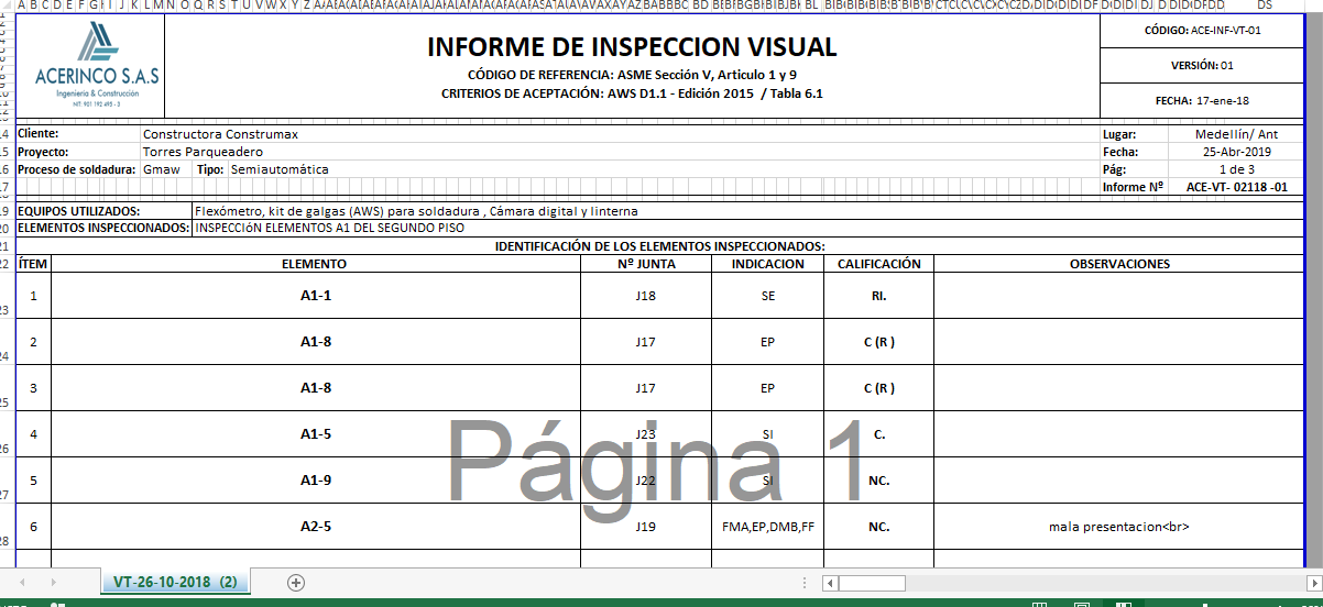 - PDF Se genera el reporte en formato PDF directamente para poder entregar al cliente. Esto permitiría por ejemplo que clientes puedan descargar directamente sus reportes, Este reporte puede incluir firmas del responsable que elaboró el documento o timbres de la empresa