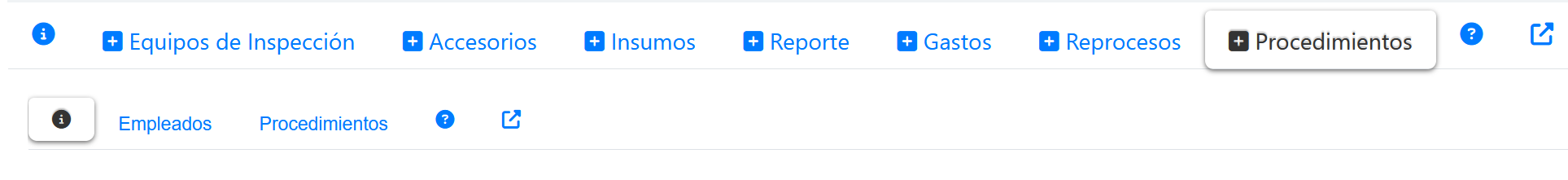 Fig 772 Detalle de opciones (pestañas en segundo nivel) luego de haber seleccionado la pestaña de extras "Procedimientos de inspección".