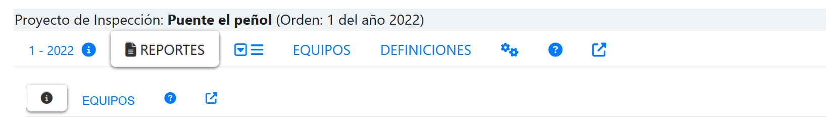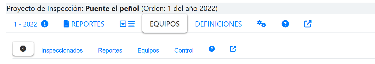 Ésta PESTAÑA se despliega si se ha seleccionado la opción Equipos en Configuración del proyecto de Inspección