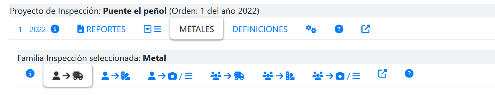 Ésta PESTAÑA se despliega si se ha seleccionado la opción METALES en Configuración del proyecto de Inspección