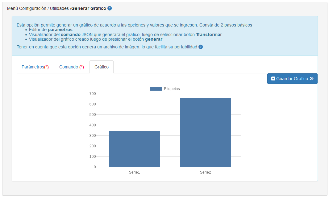 Al seleccionar esta opción, se activará un módulo que permite generar gráficos, esto es útil en caso de que se tenga que incorporar un gráfico en un reporte. Aparecerá una pantalla tal como se muestra a continuación