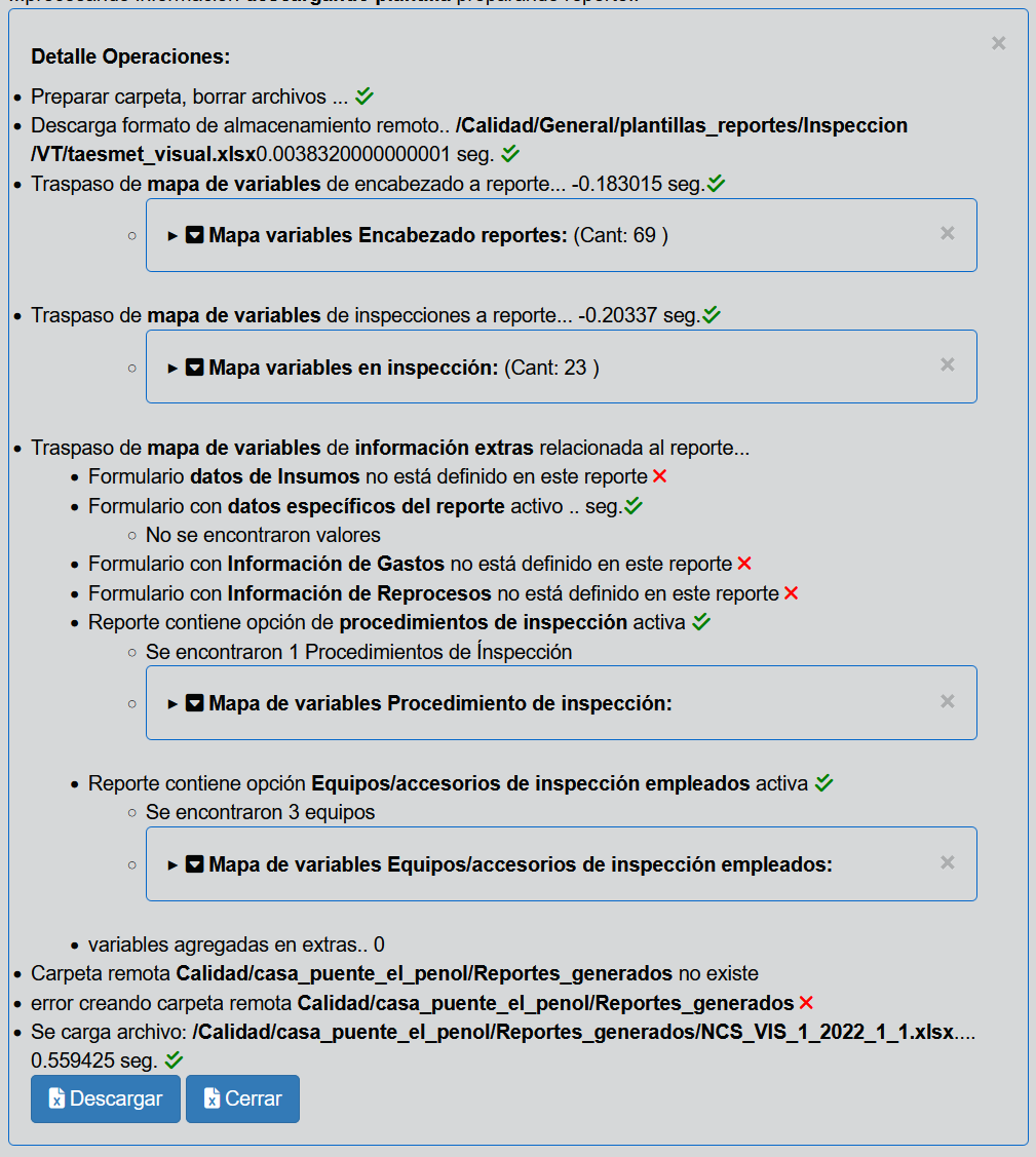 Esta opción corresponde a la última etapa e involucra aspectos asociados a la generación de un reporte con un formato conocido por el usuario con base a la información adquirida durante las inspecciones y una información adicional. Mayor información, ver Etapas de un Reporte