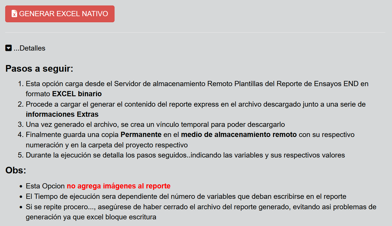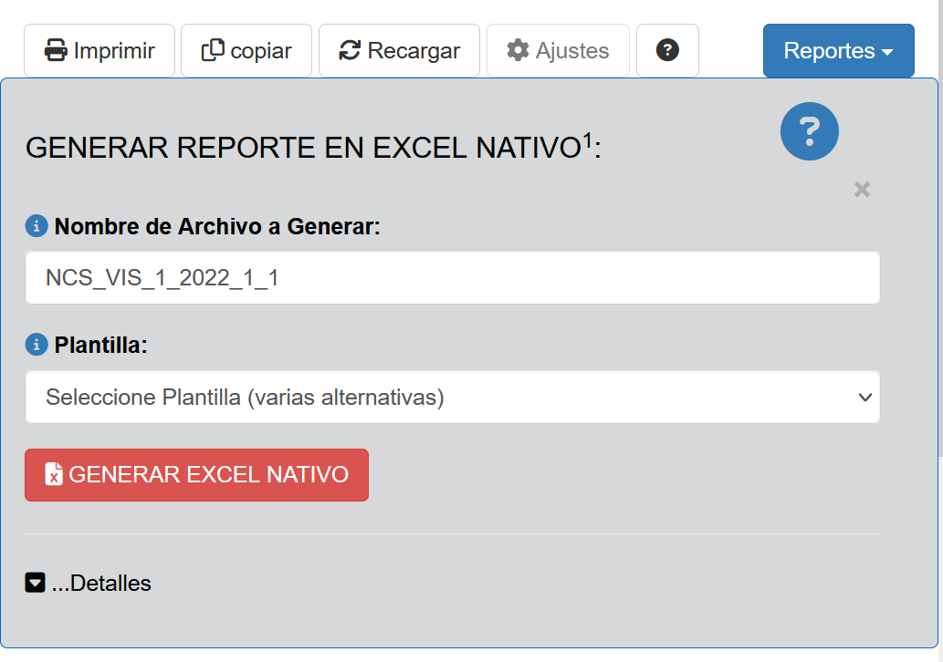 Fig 677 Ventana detalle para la generación de Reporte EXCEL en formato Nativo.