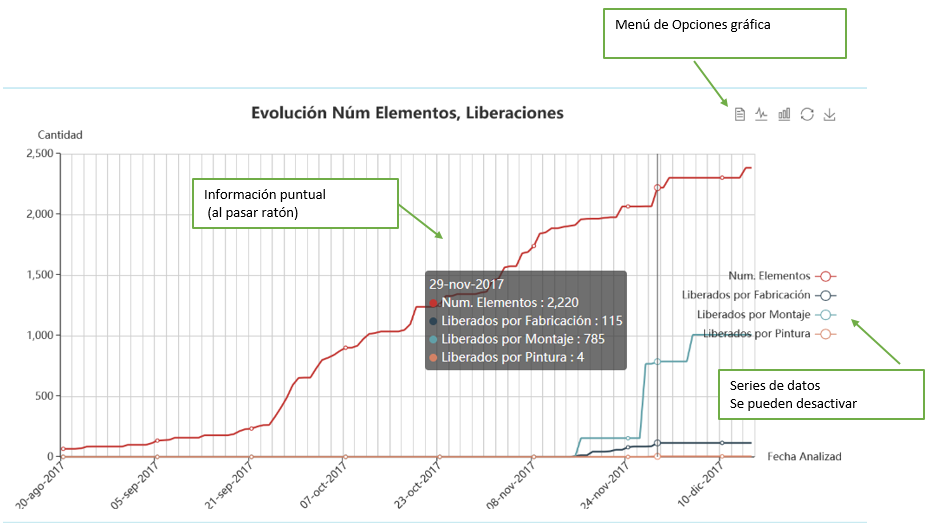 Fig 284 Extracto de Pantalla mostrando un gráfico del tipo "Elementos (Cantidad)" para una determinada Orden de Servicio con los parámetros seleccionados.