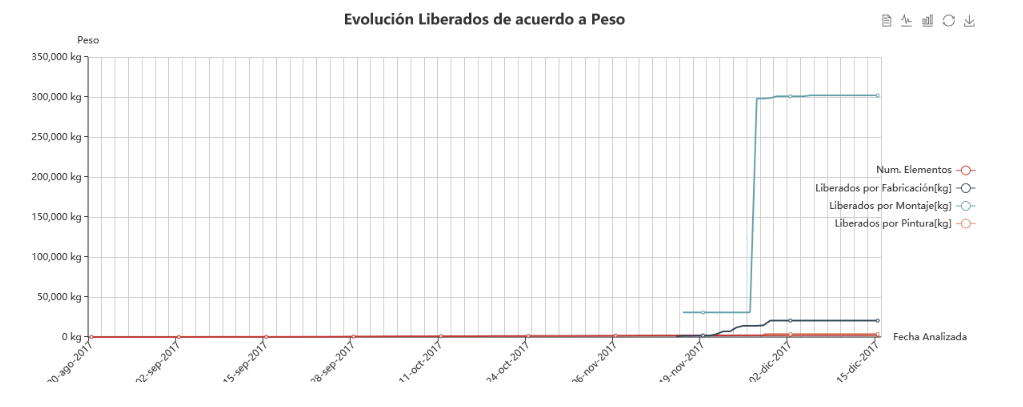 Fig 285 Extracto de Pantalla mostrando un gráfico del tipo "Elementos (Peso)" para una determinada Orden de Servicio con los parámetros seleccionados.