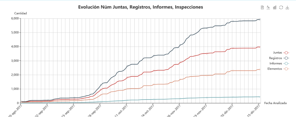 Para construir los gráficos, se emplea una librería de Gráficos especial y su información se ha agrupado la información obtenida de acuerdo a diversos criterios