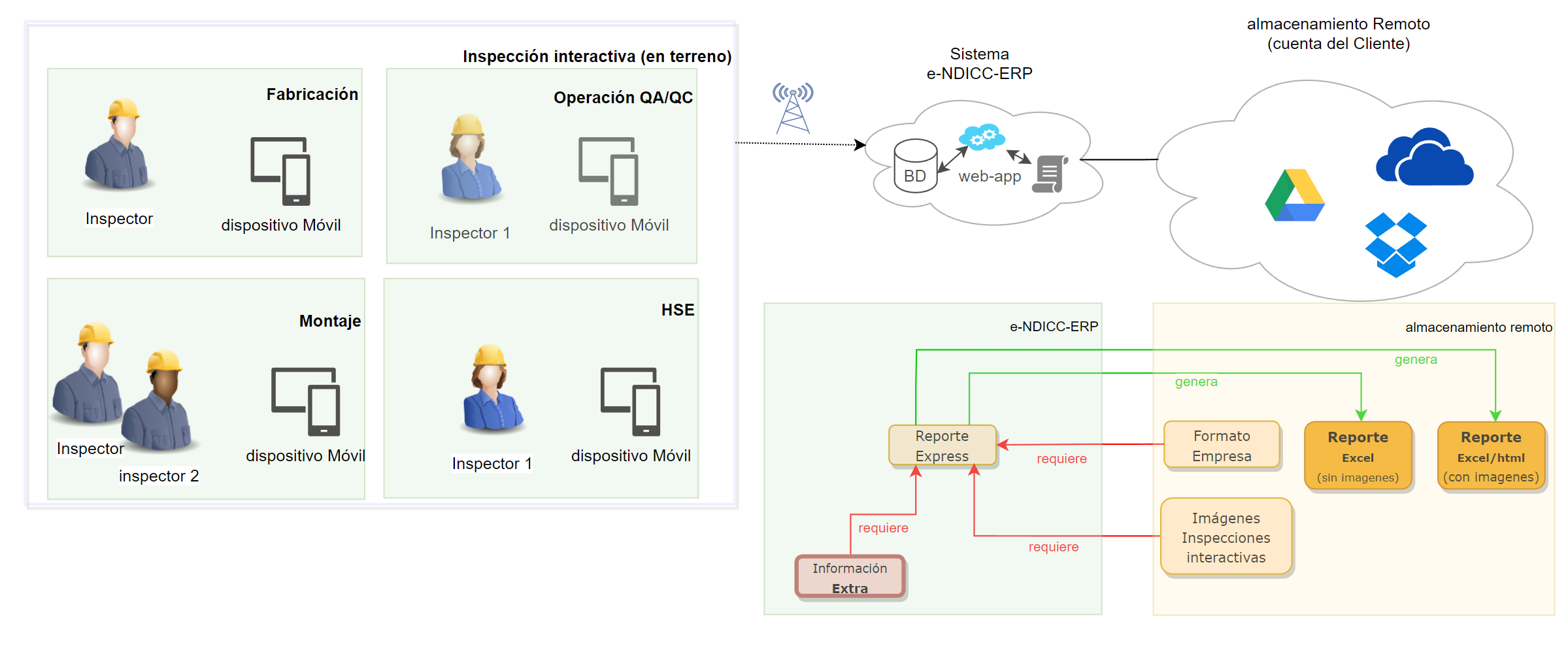 Es claro que la información obtenida de una inspección interactiva en el Reporte Express no refleja toda la información que se requiere para poder generar un reporte adecuadamente. Es necesario agregar una información 'extra' que permita completarlo y poder generar adecuadamente el reporte en formato digital en el medio de almacenamiento remoto que disponga el cliente, tal como se muestra en la siguiente imagen .
