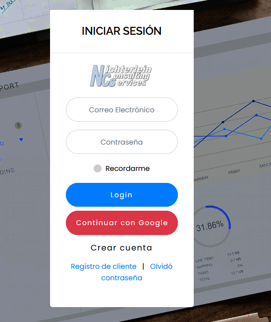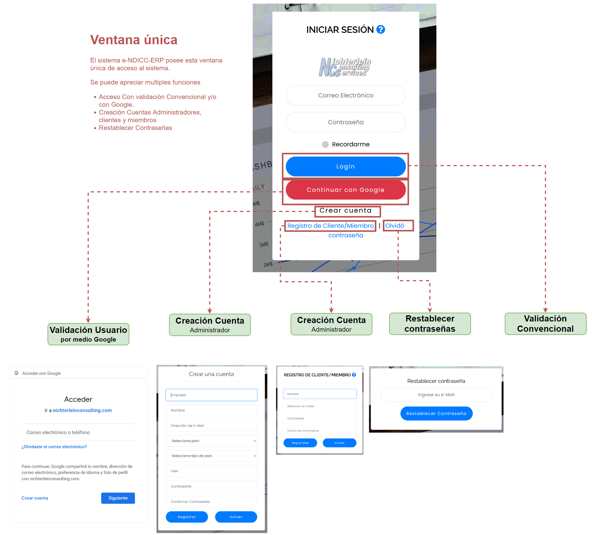 Una vez definida la cuenta, el sistema e-NDICC-ERP ofrece una ventana única para ingresar al sistema.