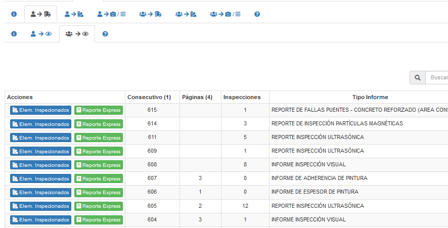 Los reportes Express creados por otros inspectores o aquellos que han sido creados desde plantilla de Office, solo tendrán permisos de lectura,
