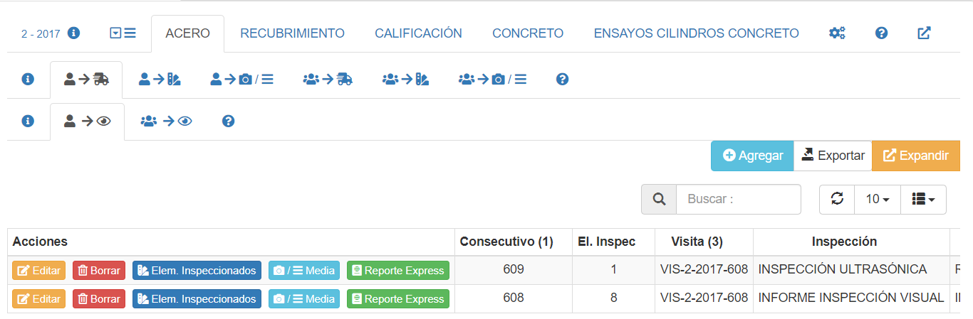 Fig 661 Detalle Inspecciones para una visita del mismo inspector que redactó el reporte.