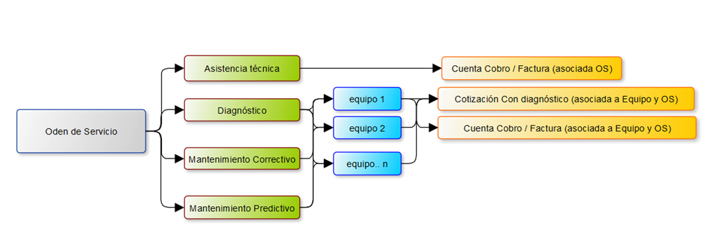 El funcionamiento de una orden de Servicio esta simplificado a través de la siguiente imagen.