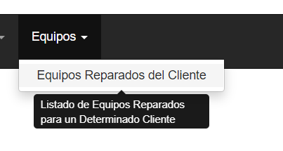 - Equipos Reparados del Cliente Muestra todos los equipos Reparados que pertenezcan al cliente. Ver m谩s detalles en Equipos Reparados para cliente