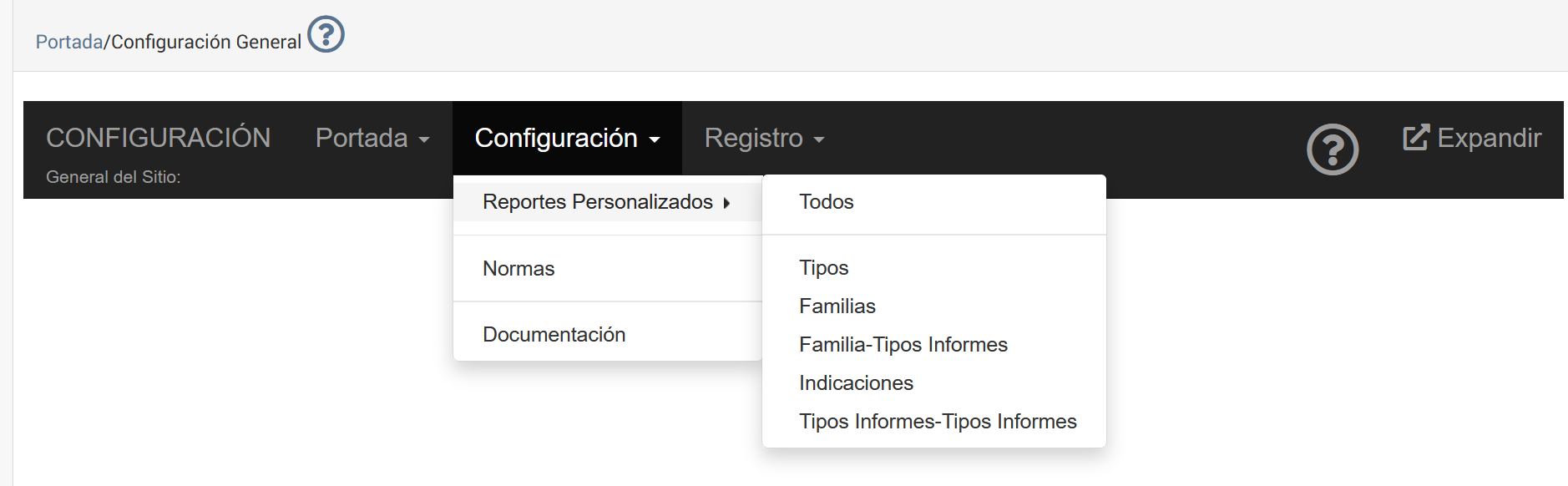 Sistema e-NDICC/Menú Configuración