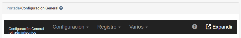 Al presionar ésta opción se muestra un encabezado con un menú de desplegable con opciones generales de configuración y temas asociados válidos para toda la empresa, tal como se indica en la siguiente imagen.