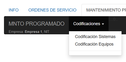 e-MMCC/ Mantenimiento de Equipos/ Orden de Servicio Pyme/ Pestaña Clientes / Mantenimiento Programado/Codificación