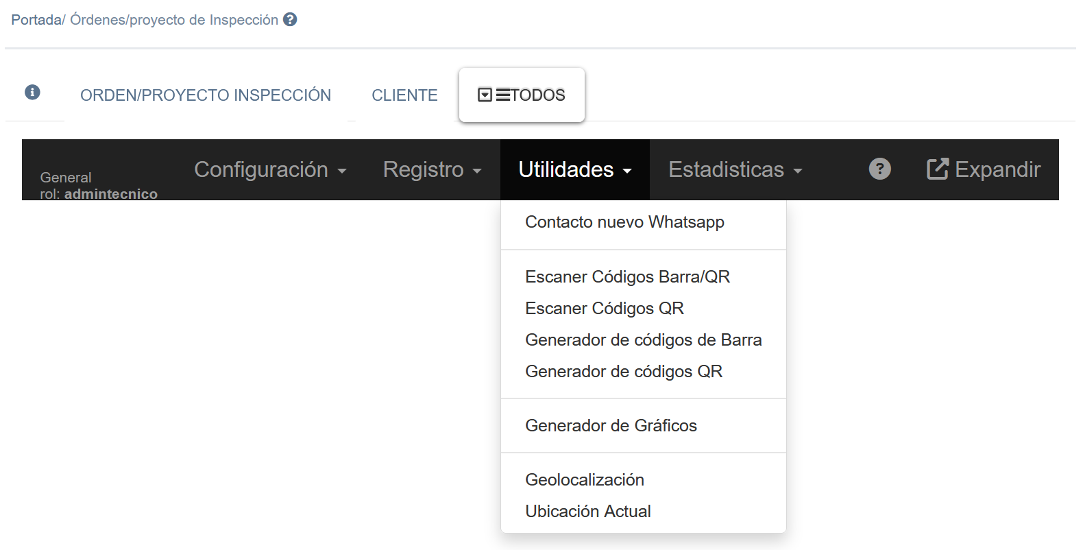 Menú Herramientas/Menú Configuración General/Opción Utilidades