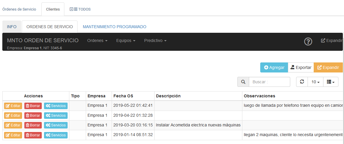 Ordenes de Servicio de un Cliente