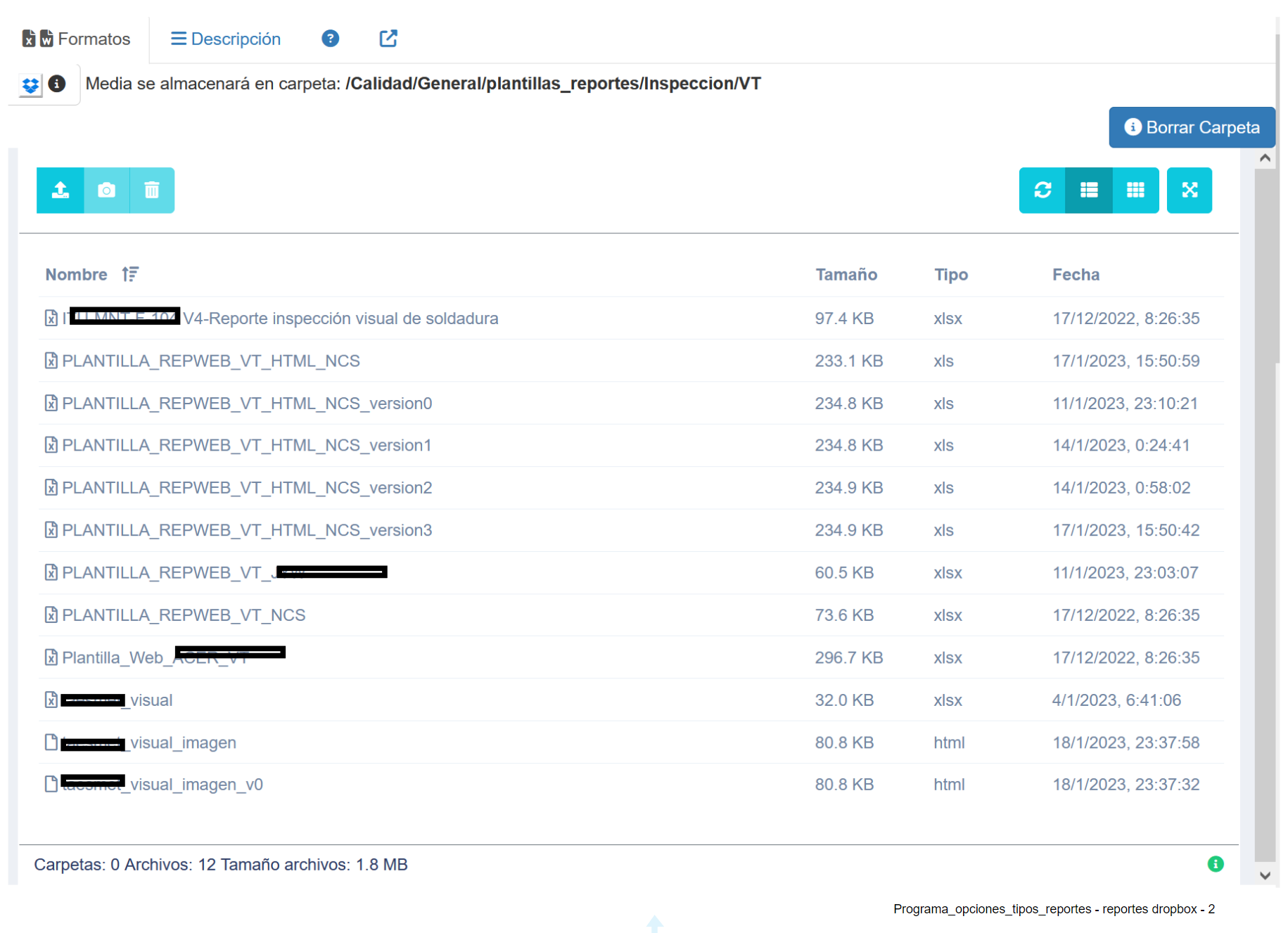 Fig 519 Extracto de pantalla, gestor de archivos empleado en sistema e-NDICC-ERP.