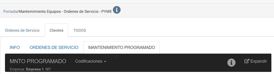 e-MMCC/ Mantenimiento de Equipos/ Orden de Servicio Pyme/ Pestaña Clientes / Mantenimiento Programado