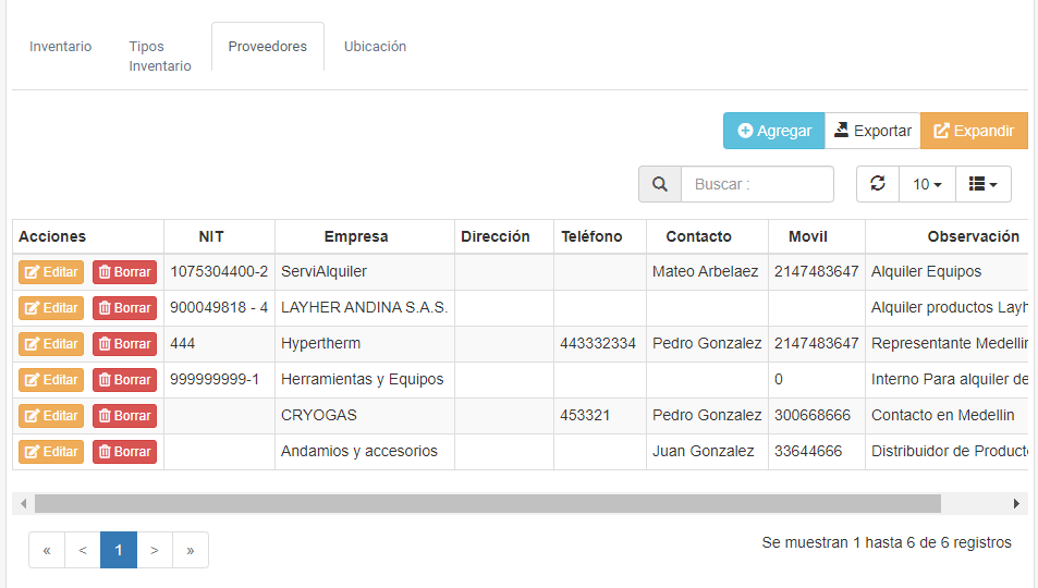 e-MMCC/ Alquiler de Equipos/Inventario/Proveedores