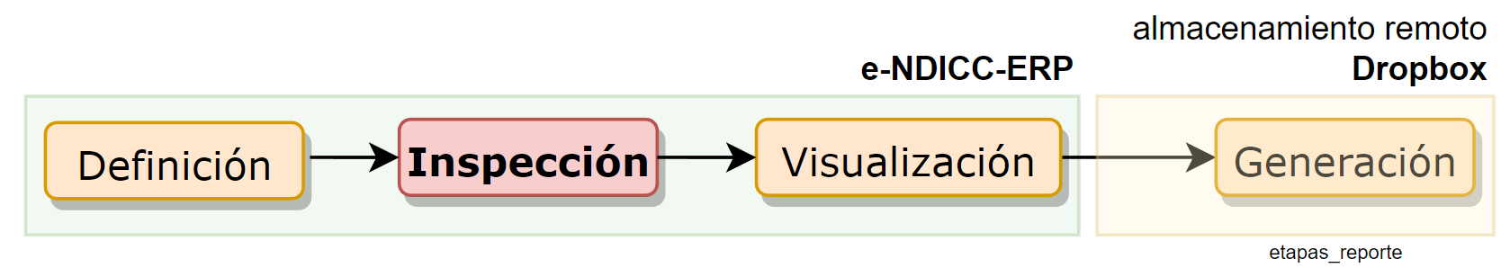 Esta opción corresponde a la tercera etapa e involucra aspectos asociados al uso de reportes previamente definidos para la realización de laInspección . Mayor información, ver Etapas de un Reporte