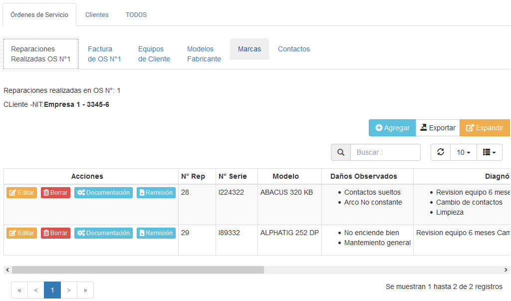 ORDENES DE SERVICIO/PESTAÑA REPACIONES REALIZADAS EMPRESAS UNIPERSONALES