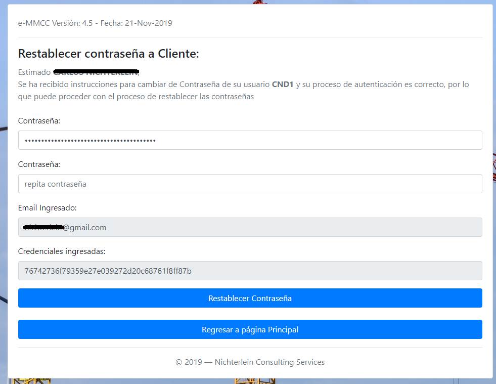 Si se accede al correo electrónico y se se selecciona el link con el Token adecuado y dentro del tiempo de espera aparecerá una pantalla en donde se puede restablecer la contraseña, tal como se muestra en la siguiente imagen.