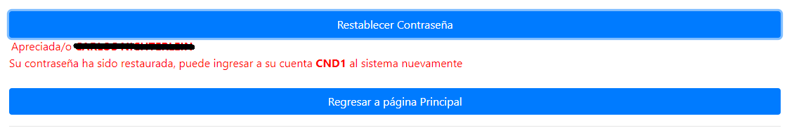 Fig 38 Extracto de pantalla indicando que restablecimiento de contraseñas fue exitoso.